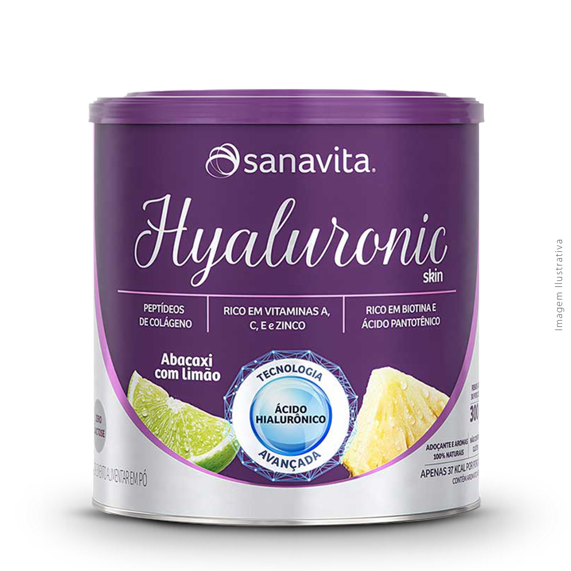 Hyaluronic Skin Sanavita é um suplemento que associa Ácido Hialurônico e Peptídeos Bioativos de Colágeno, contribuindo para a melhora da saúde e aparência da pele.